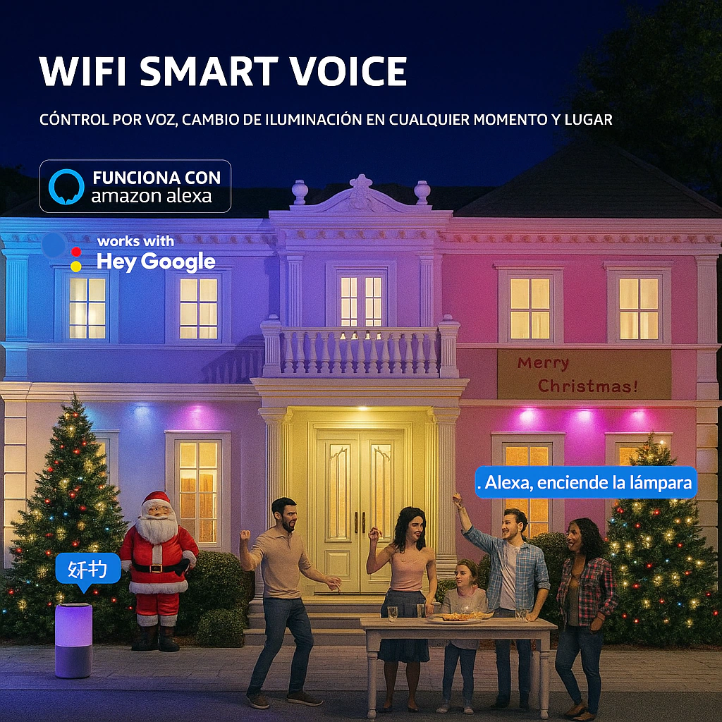 Diseñadas para resistir el clima y transformar cualquier espacio al aire libre. Nuestras luces LED RGB de 15 metros te permiten crear ambientes únicos, con control total desde el celular, control remoto o por voz. Colores vibrantes, materiales duraderos y bajo consumo.